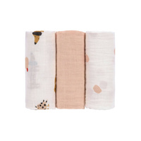 Komplet trzech wielofunkcyjnych bawełnianych pieluszek otulaczy z kolekcji Little Mateys niemieckiej marki LASSIG. Jeden w ciepłym odcieniu melanżowego pudrowego różu, drugi kremowy ze wzorem w grochy, a trzeci z grafiką zabawnych domowych pupili: łaciatym jamnikiem, świnką morską w ciapki czy nakrapianym gołębiem (niektóre wzorki na zwierzakach są pomarańczowe). Kocyki mają wygodne rozmiary – 60x60 cm – i mogą być używane np. do owijania maluszka, jako pieluszka do odbijania po karmieniu, okrycie podczas letniej drzemki, osłona do wózka, jako prześcieradełko, chusta do karmienia i na wszelkie inne sposoby według potrzeb. Są jednowarstwowe, przewiewne i delikatne dla skóry. Dzięki kompletowi 3 sztuk rodzic ma potrzebny otulacz zawsze pod ręką.
